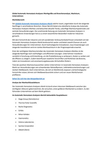 Global Automatic Hemostasis Analyzers Marktgröße und Branchenanalyse, Wachstum, Unternehmen
