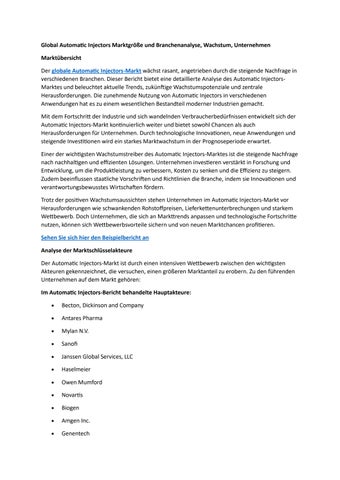 Global Automatic Injectors Marktgröße und Branchenanalyse, Wachstum, Unternehmen