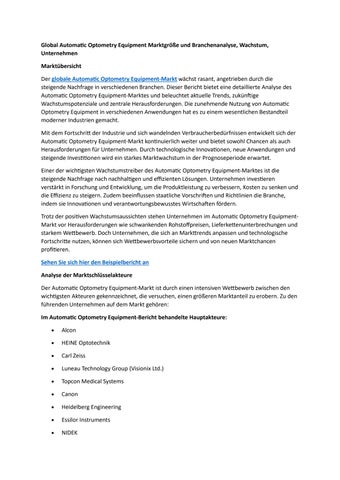 Global Automatic Optometry Equipment Marktgröße und Branchenanalyse, Wachstum, Unternehmen