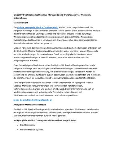 Global Hydrophilic Medical Coatings Marktgröße und Branchenanalyse, Wachstum, Unternehmen
