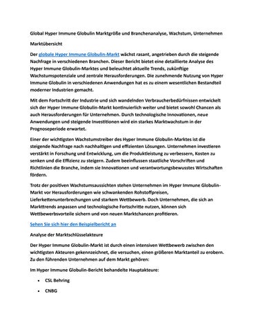 Global Hyper Immune Globulin Marktgröße und Branchenanalyse, Wachstum, Unternehmen