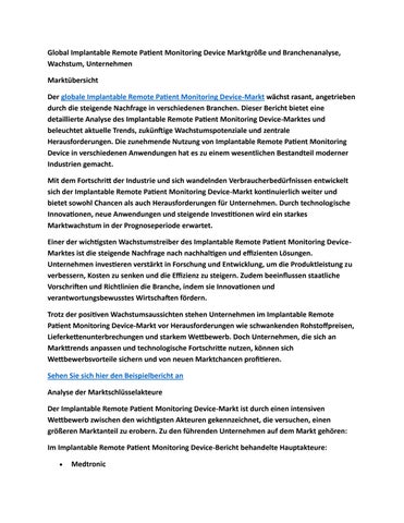 Global Implantable Remote Patient Monitoring Device Marktgröße und Branchenanalyse, Wachstum, Untern