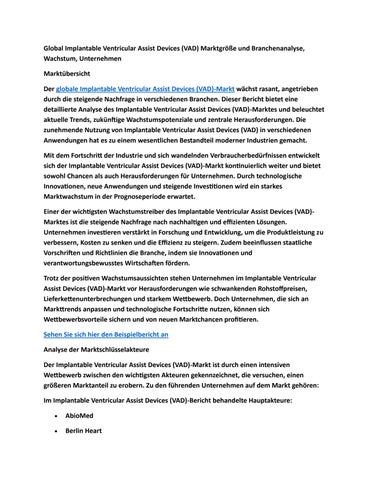 Global Implantable Ventricular Assist Devices (VAD) Marktgröße und Branchenanalyse, Wachstum, Untern
