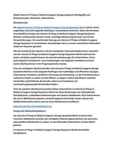 Global Internet of Things to Medical Cryogenic Storage Equipment Marktgröße und Branchenanalyse, Wac