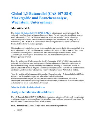 Global 1,3-Butanediol (CAS 107-88-0) Marktgröße und Branchenanalyse, Wachstum, Unternehmen