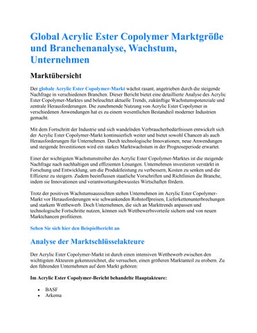 Global Acrylic Ester Copolymer Marktgröße und Branchenanalyse