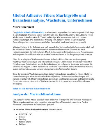 Global Adhesive Fibers Marktgröße und Branchenanalyse