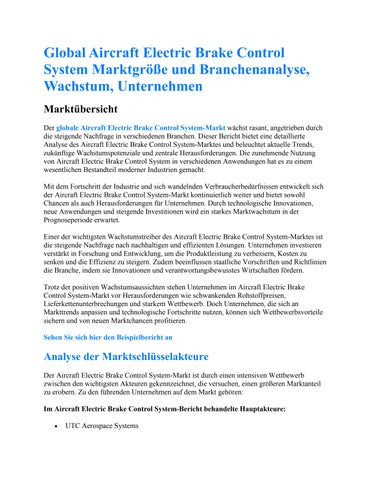 Global Aircraft Electric Brake Control System Marktgröße und Branchenanalyse