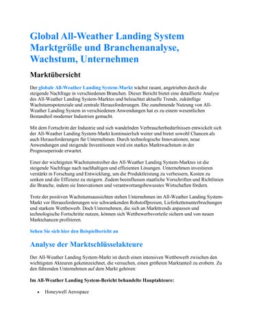 Global All-Weather Landing System Marktgröße und Branchenanalyse, Wachstum, Unternehmen