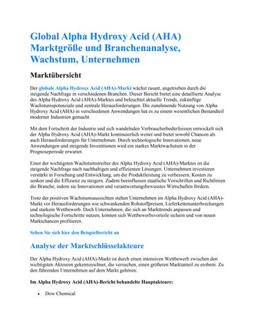Global Alpha Hydroxy Acid (AHA) Marktgröße und Branchenanalyse, Wachstum, Unternehmen