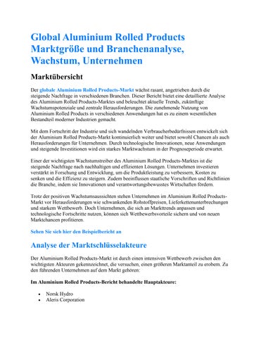 Global Aluminium Rolled Products Marktgröße und Branchenanalyse