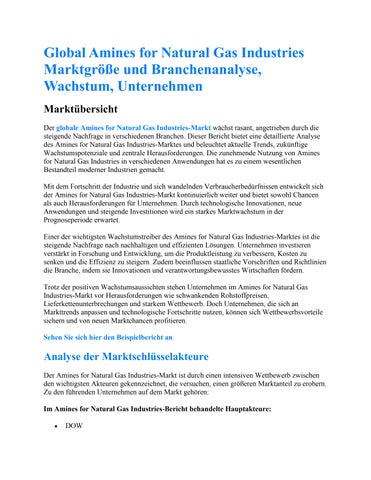Global Amines for Natural Gas Industries Marktgröße und Branchenanalyse