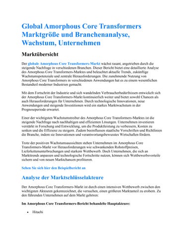 Global Amorphous Core Transformers Marktgröße und Branchenanalyse