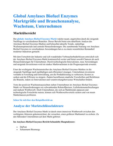 Global Amylases Biofuel Enzymes Marktgröße und Branchenanalyse