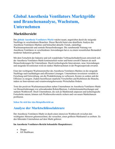 Global Anesthesia Ventilators Marktgröße und Branchenanalyse