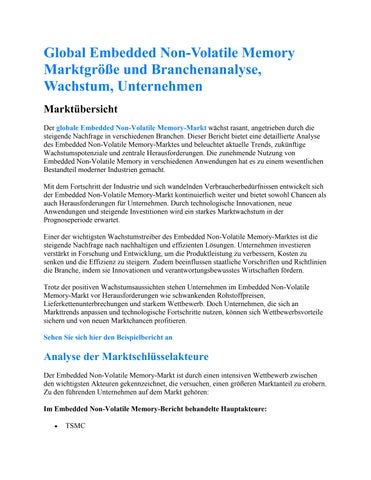 Global Embedded Non-Volatile Memory Marktgröße und Branchenanalyse, Wachstum, Unternehmen