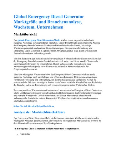 Global Emergency Diesel Generator Marktgröße und Branchenanalyse