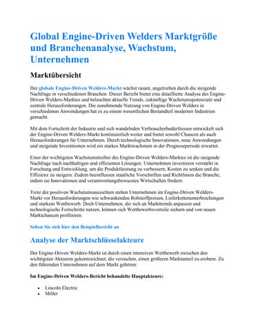 Global Engine-Driven Welders Marktgröße und Branchenanalyse, Wachstum, Unternehmen