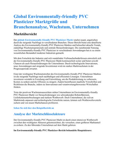 Global Environmentally-friendly PVC Plasticizer Marktgröße und Branchenanalyse, Wachstum, Unternehme