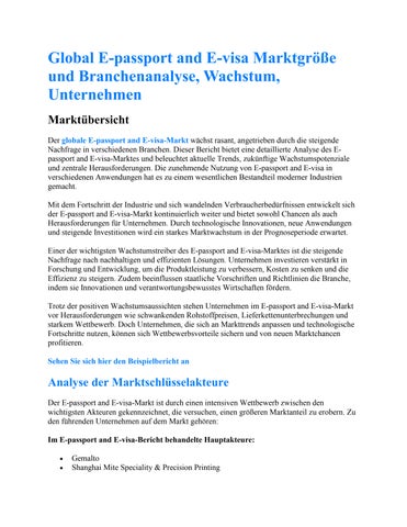 Global E-passport and E-visa Marktgröße und Branchenanalyse, Wachstum, Unternehmen