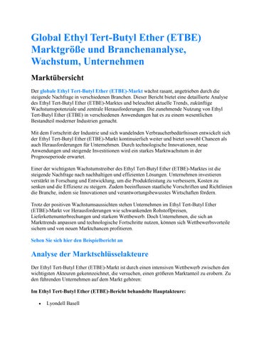 Global Ethyl Tert-Butyl Ether (ETBE) Marktgröße und Branchenanalyse, Wachstum, Unternehmen