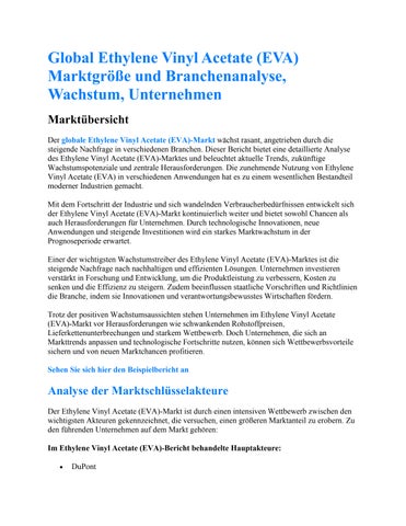 Global Ethylene Vinyl Acetate (EVA) Marktgröße und Branchenanalyse, Wachstum, Unternehmen