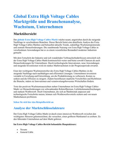 Global Extra High Voltage Cables Marktgröße und Branchenanalyse