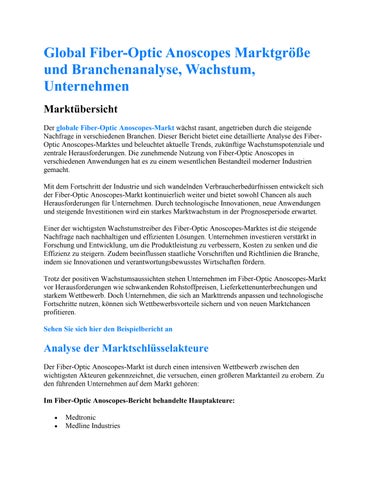 Global Fiber-Optic Anoscopes Marktgröße und Branchenanalyse, Wachstum, Unternehmen