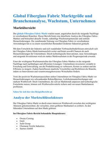 Global Fiberglass Fabric Marktgröße und Branchenanalyse