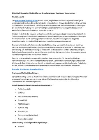 Global Cell Harvesting Marktgröße und Branchenanalyse, Wachstum, Unternehmen
