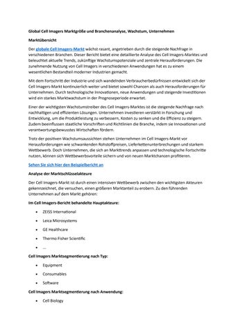 Global Cell Imagers Marktgröße und Branchenanalyse, Wachstum, Unternehmen