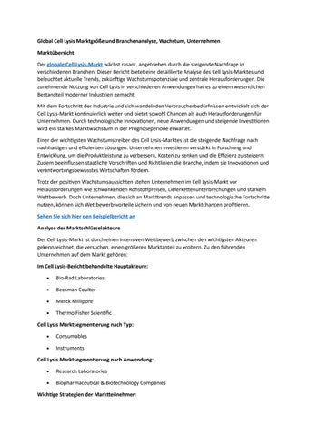 Global Cell Lysis Marktgröße und Branchenanalyse, Wachstum, Unternehmen