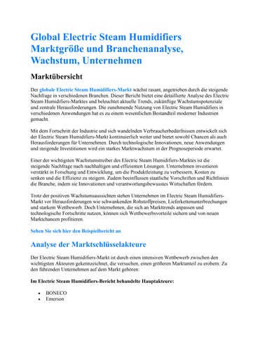Global Electric Steam Humidifiers Marktgröße und Branchenanalyse