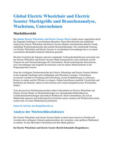 Global Electric Wheelchair and Electric Scooter Marktgröße und Branchenanalyse