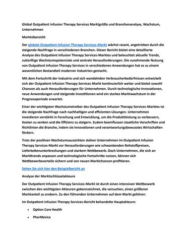Global Outpatient Infusion Therapy Services Marktgröße und Branchenanalyse, Wachstum, Unternehmen