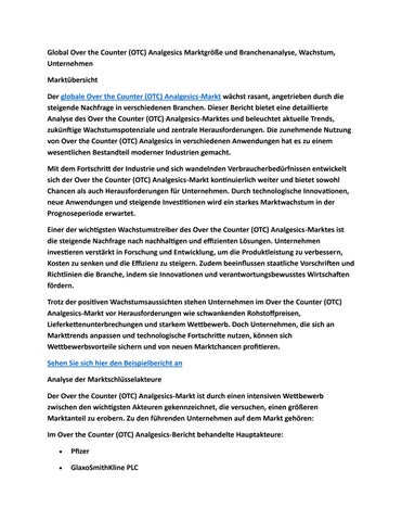 Global Over the Counter (OTC) Analgesics Marktgröße und Branchenanalyse, Wachstum, Unternehmen