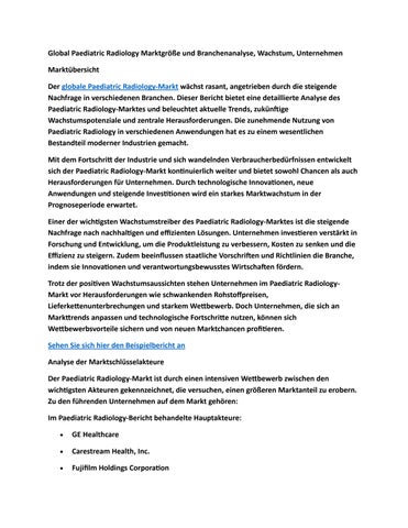 Global Paediatric Radiology Marktgröße und Branchenanalyse, Wachstum, Unternehmen