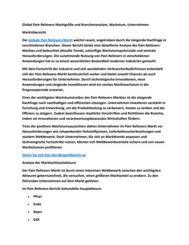 Global Pain Relievers Marktgröße und Branchenanalyse, Wachstum, Unternehmen