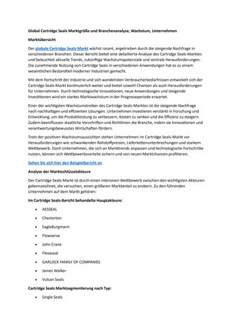 Global Cartridge Seals Marktgröße und Branchenanalyse, Wachstum, Unternehmen