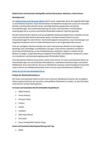 Global Casein and Caseinates Marktgröße und Branchenanalyse, Wachstum, Unternehmen