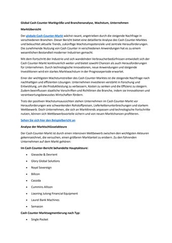 Global Cash Counter Marktgröße und Branchenanalyse, Wachstum, Unternehmen