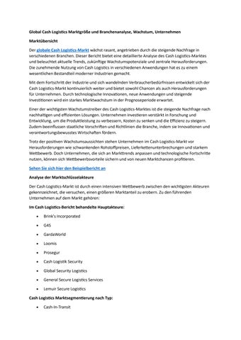 Global Cash Logistics Marktgröße und Branchenanalyse, Wachstum, Unternehmen