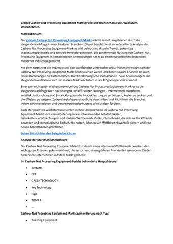 Global Cashew Nut Processing Equipment Marktgröße und Branchenanalyse, Wachstum, Unternehmen