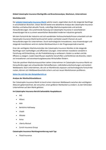 Global Catastrophe Insurance Marktgröße und Branchenanalyse, Wachstum, Unternehmen