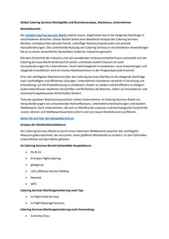 Global Catering Services Marktgröße und Branchenanalyse, Wachstum, Unternehmen