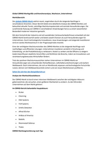 Global CBRND Marktgröße und Branchenanalyse, Wachstum, Unternehmen