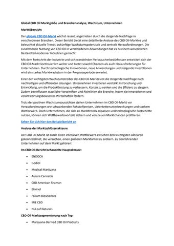 Global CBD Oil Marktgröße und Branchenanalyse, Wachstum, Unternehmen