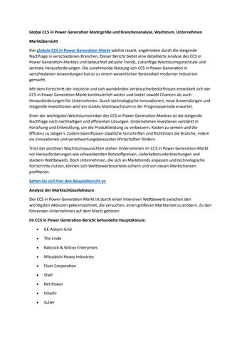 Global CCS in Power Generation Marktgröße und Branchenanalyse, Wachstum, Unternehmen