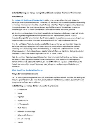Global Cell Banking and Storage Marktgröße und Branchenanalyse, Wachstum, Unternehmen