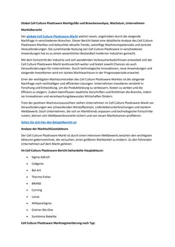 Global Cell Culture Plasticware Marktgröße und Branchenanalyse, Wachstum, Unternehmen